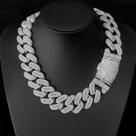 ファインジュエリーレディース29mmアイスキューバリンクチェーンバゲットシルバーメッキダイヤモンド分厚いキューバリンクチョーカーネックレス金メッキ