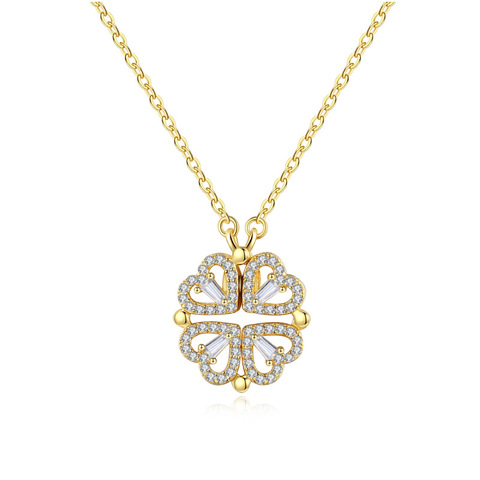 人気の4磁気ハートペンダントネックレスジルコン付き925シルバーゴールドメッキファッショナブルな4リーフクローバーコリアーパーティー用