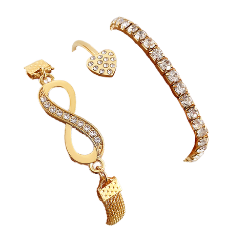 カスタムフルダイヤモンド多層インフィニティハートブレスレットセットピーチオープンチャームバングルジュエル女性用ファッショナブルなチャームブレスレット